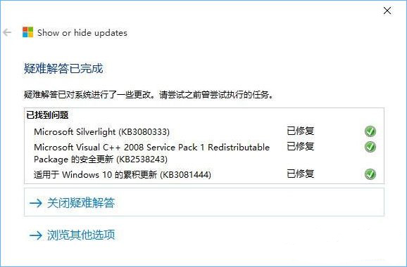 4、等待“Show or Hide Updates”強制關(guān)閉windows更新;