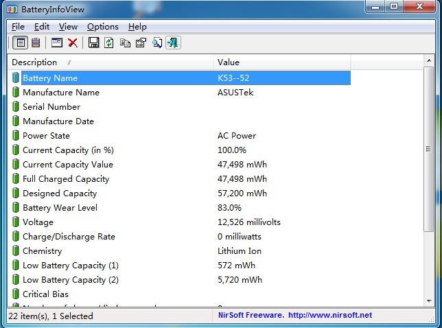 BatteryInfoView(電池狀態(tài)查看軟件)