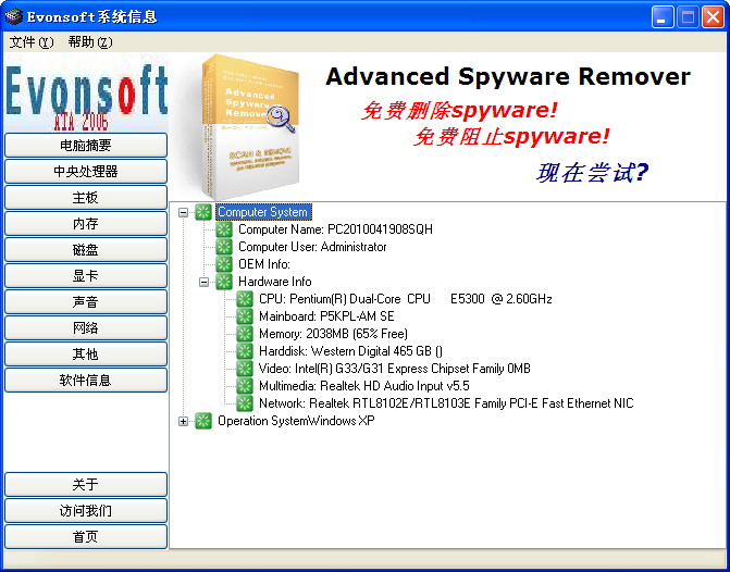 Evonsoft System Info系統(tǒng)信息檢測V1.2.5.4綠色版|