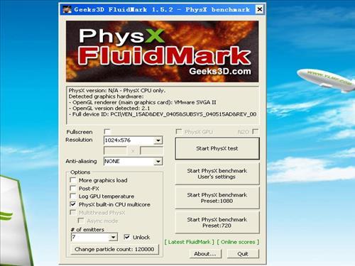 FluidMark基于NVIDIA PhysX物理引擎技術(shù),通過流體模擬來考察處理器、顯卡、物理卡的物理處理能力,使用了