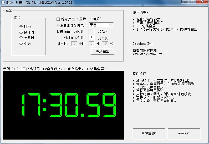 全屏幕秒表倒計時軟件1.0722 綠色破解版|