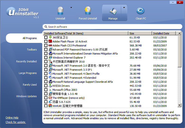 Iobit Uninstaller(移除或卸載程序工具)v2.0 英文綠色版|