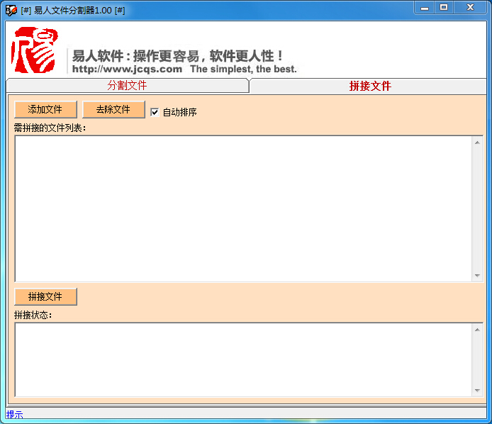 易人文件分割器是一款純免費(fèi)綠色工具軟件,用于所有文件的分割、拼接。當(dāng)用戶文件太大,無(wú)法成功進(jìn)行網(wǎng)絡(luò)傳
