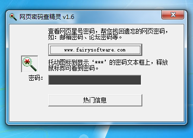 用于查看網(wǎng)頁星號密碼,幫您找回遺忘的網(wǎng)頁密碼,如:郵箱密碼、論壇密碼等