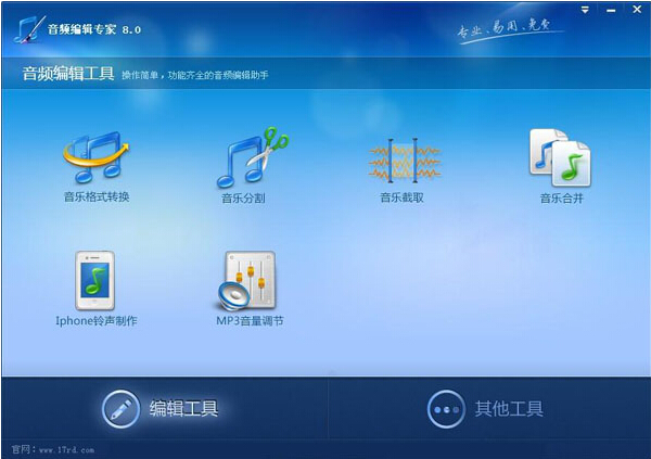 1.音樂格式轉換:在不同的音頻格式之間互相轉換 2.音樂分割:把一個音樂文件分割成幾段 3.音樂截?。喊涯?/p>