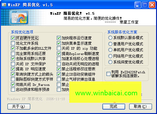 WinXP 簡易優(yōu)化V1.5 build 1121綠色版|