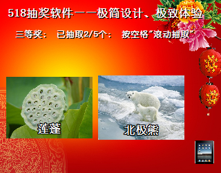 518抽獎(jiǎng)軟件——年會(huì)抽獎(jiǎng)軟件,極簡(jiǎn)設(shè)計(jì)風(fēng)格,含照片抽獎(jiǎng)、文字抽獎(jiǎng)兩種方式。 獨(dú)特優(yōu)勢(shì)