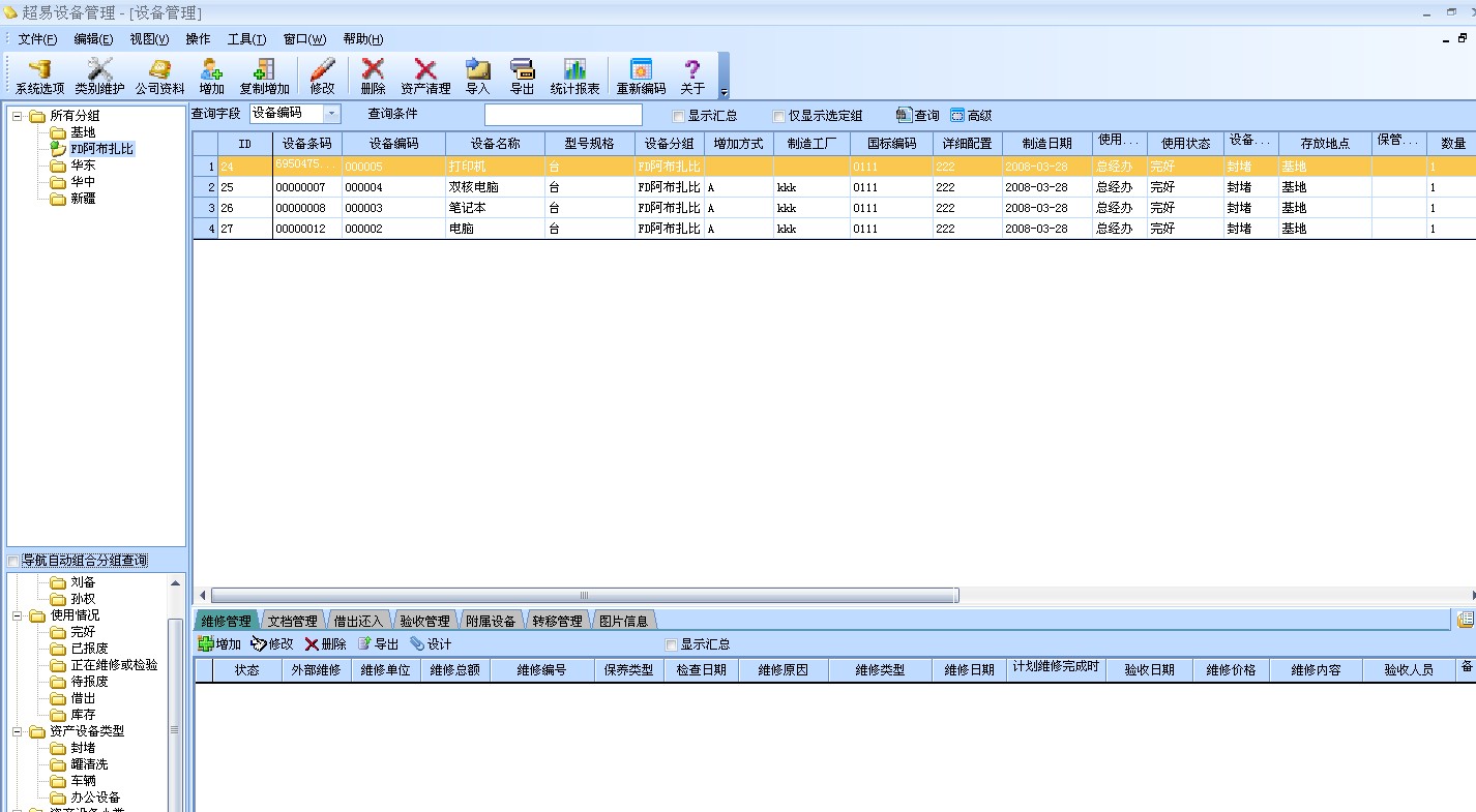 超易設(shè)備管理軟件主要功能點(diǎn)為:軟件完整登記設(shè)備的基本資料,同時(shí)提供設(shè)備的維修管理,配件管理,調(diào)撥管理