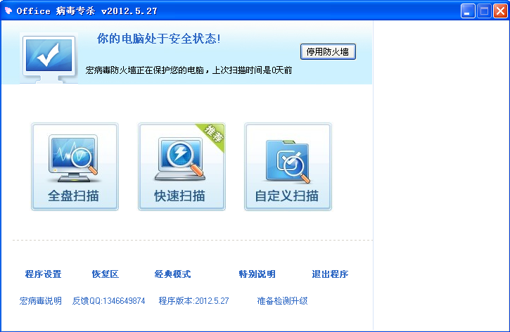 本專殺用于解決Book1、Startup、Results、Poppy等Office常見宏病毒。OFFICE宏病毒專殺工具,特別提醒,不要