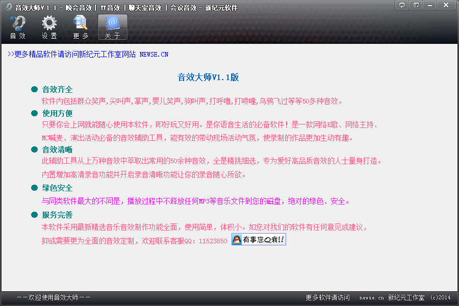 音效大師V1.1版 ● 音效齊全 軟件內(nèi)包括群眾笑聲,尖叫聲,掌聲,嬰兒笑聲,狗叫聲,打呼嚕,打噴嚏,烏鴉飛過等等