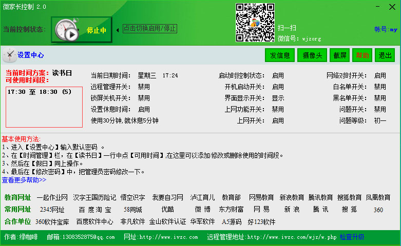 微家長(zhǎng)控制電腦是一款以控制電腦使用時(shí)間為主的電腦軟件,限制電腦使用的時(shí)間,防止小孩長(zhǎng)時(shí)間過(guò)度使用電腦