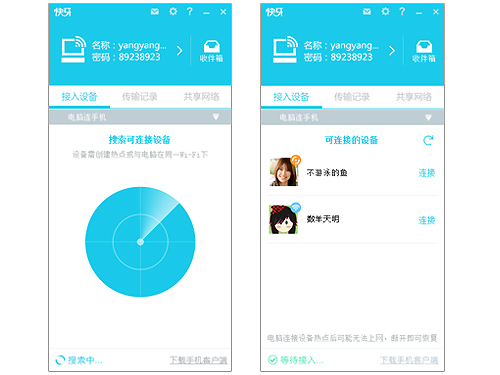 手機版快牙的好伴侶,無需數(shù)據(jù)線,只要電腦有無線網(wǎng)卡,即使沒有網(wǎng)絡(WLAN)環(huán)境也可以實現(xiàn)電腦與手機的互