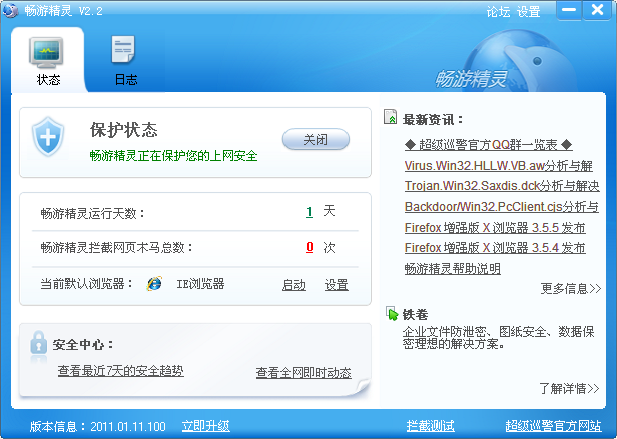 暢游精靈是超級(jí)巡警實(shí)驗(yàn)室推出的網(wǎng)頁殺毒軟件,產(chǎn)品在原暢游巡警的基礎(chǔ)上進(jìn)行二次開發(fā),采用更先進(jìn)的腳本引
