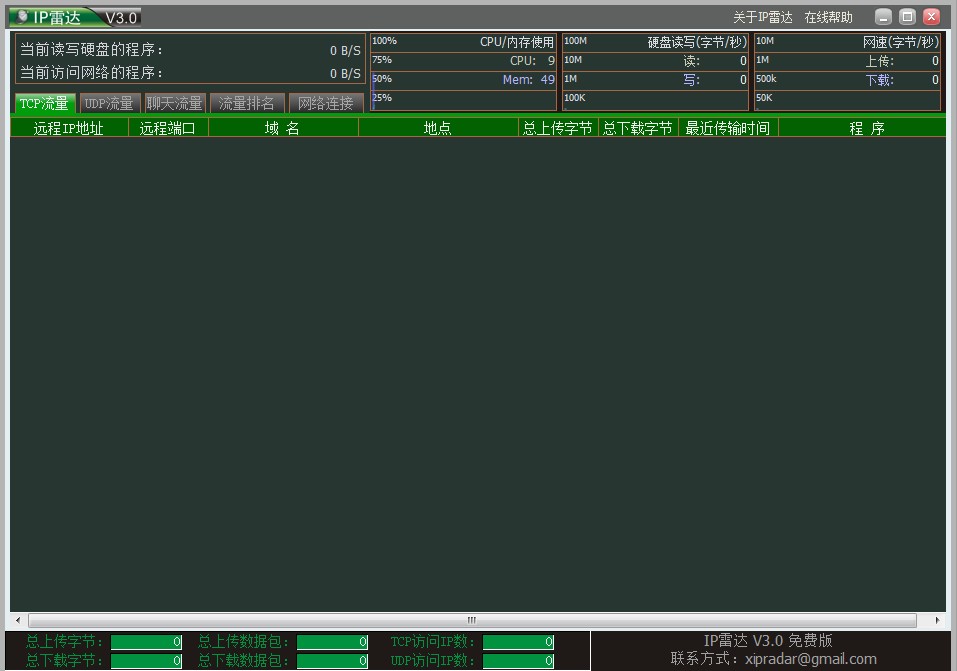 IP雷達可以幫助你了解自己的電腦使用網(wǎng)絡(luò)和讀寫硬盤的情況,IP雷達顯示哪些程序正在讀寫你的硬盤,你訪問過