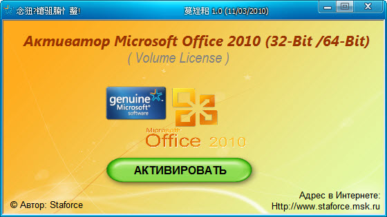 可以激活office 2010 vol 版并能通過(guò)微軟正版驗(yàn)證。程序界面是俄文。