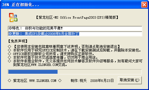 1、源文件采用微軟原版OFFICE2003企業(yè)版ISO里面的FrontPage2003,集成SP3補丁及截至08年6月所有補丁。