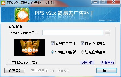 PPS網(wǎng)絡(luò)電視2.x 簡易去廣告補(bǔ)丁V1.41綠色版|