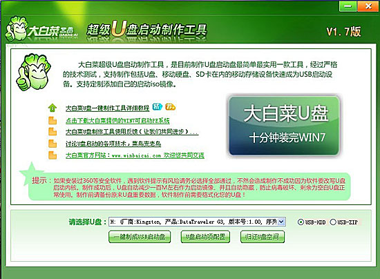 大白菜超級(jí)U盤(pán)啟動(dòng)盤(pán)制作工具V1.7|