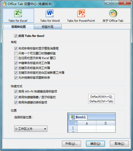 Office Tab是一款應(yīng)用于 Microsoft Office 的插件,其內(nèi)含 Tabs for Excel Tab、Tabs for Word 和 Tabs for PowerPoint 三個(gè)組件,分別對(duì)應(yīng)支持 Excel、Word 和 PowerPoint 的多標(biāo)簽?zāi)J竭\(yùn)行。其主要作用就是為 Microsoft Office 辦公軟件 Word、Excel、Powerpoint 添加一個(gè)類似于 IE、Firefox 的多標(biāo)簽工具欄。方便用戶在不同的文檔(工作簿或者演示文稿)之間切換。提升您使用 Microsoft Office 辦公的效率。[br][br]免費(fèi)版本有極少部分功能及用途限制,無(wú)使用期限和注冊(cè)提示框等限制。