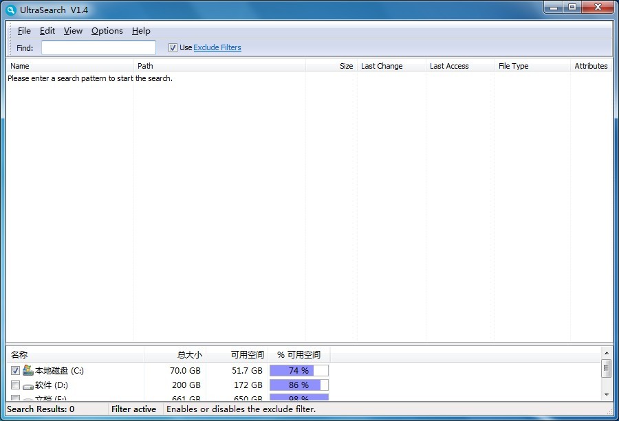 UltraSearch(超速搜索文件)V1.7.1漢化綠色版|