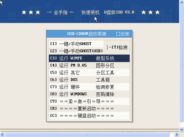 金手指快速裝機(winpe) U盤版V3.0(U盤量產(chǎn)CDROM+HDD選用|