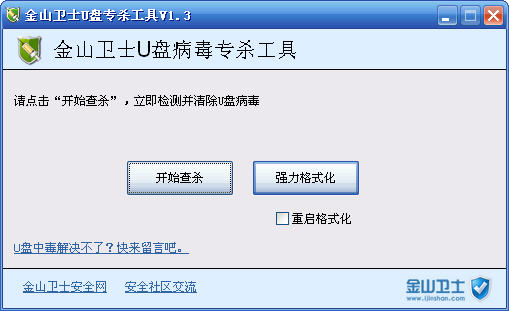 金山衛(wèi)士U盤專殺工具V1.3 簡(jiǎn)體中文綠色免費(fèi)版|