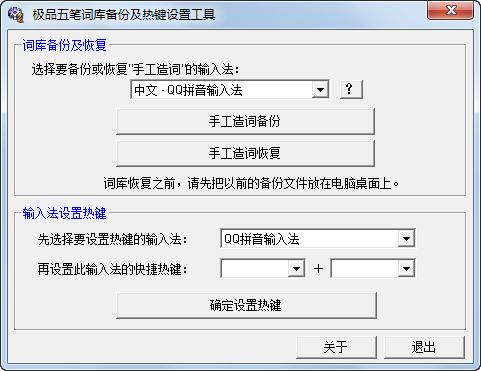 極品五筆詞庫(kù)備份熱鍵設(shè)置工具