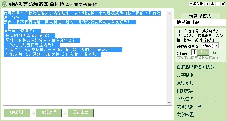 網(wǎng)絡(luò)發(fā)言防和諧器(敏感詞過濾軟件/百度貼吧和諧測試器)V2.5 綠色版|