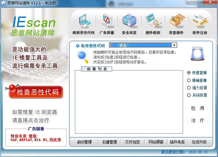 惡意網(wǎng)站清除器(Iescan)2010 V12.1綠色特別版|