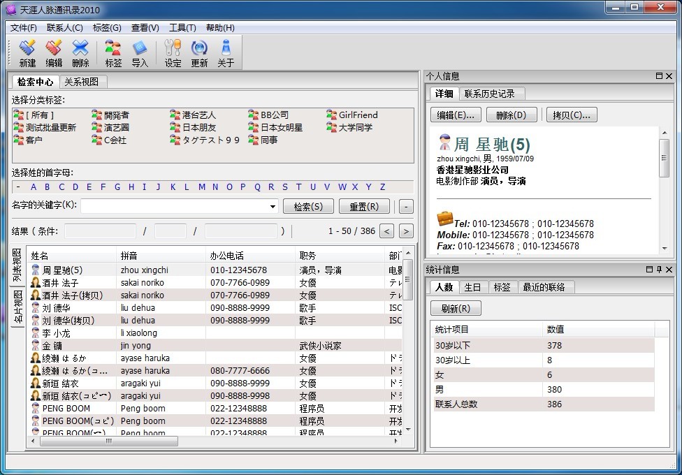 天涯人脈通訊錄2010V3.4.1.0綠色免費(fèi)版|