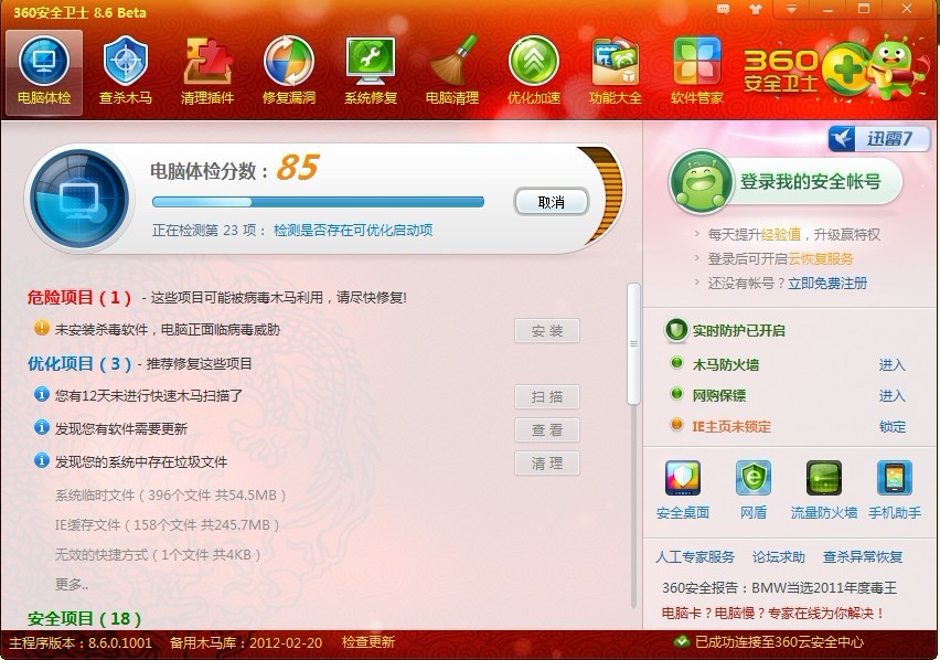 360安全衛(wèi)士8.6.0.1001beta 2012測試版|