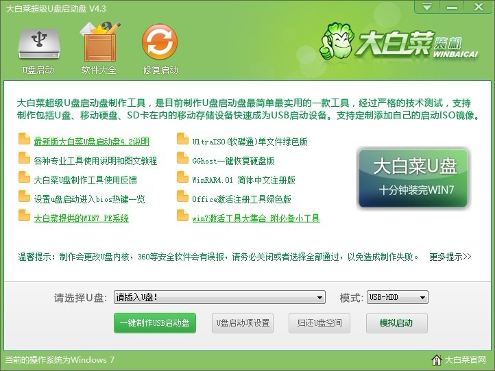 大白菜超級U盤啟動盤制作工具V4.3(2012最新U盤裝系統(tǒng))|