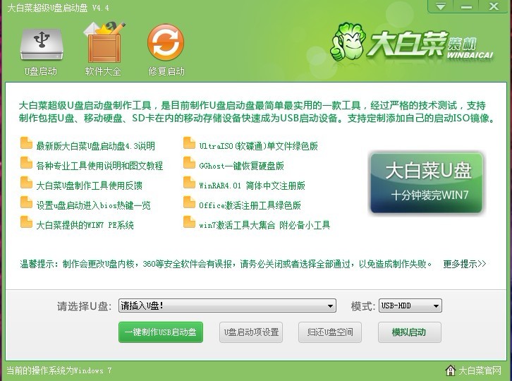 大白菜超級(jí)U盤啟動(dòng)盤制作工具V4.4|