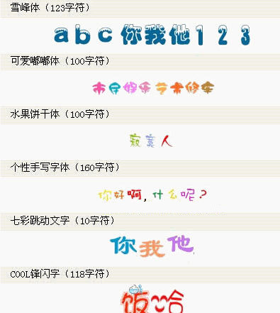 全套漂亮可愛的QQ彩色字體|