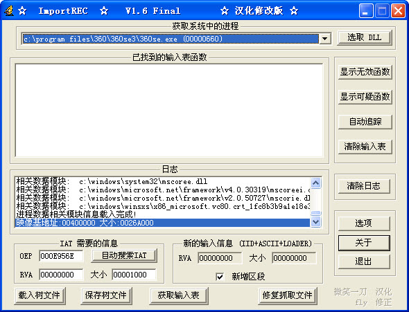 手動(dòng)脫殼工具(Import REConstructor)V1.6 Final微笑一刀漢化修正版|