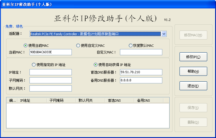 亞科爾IP修改助手1.2 簡體中文綠色免費版|