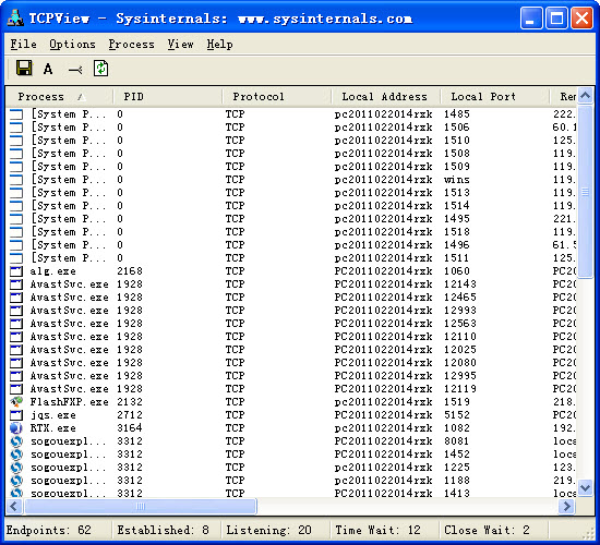 顯示TCP&UDP端口的小工具(TCPView)3.05 綠色版|