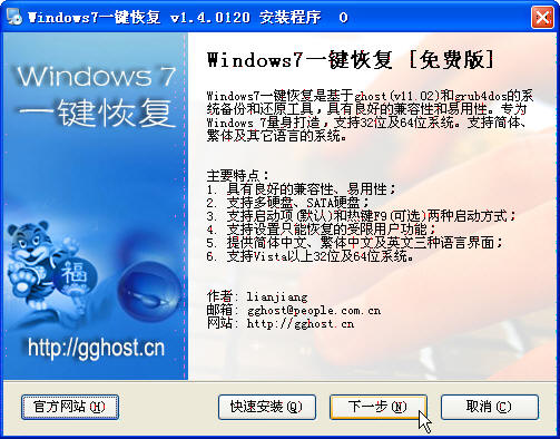 Windows7一鍵恢復(fù)V1.6.0228官方安裝版|