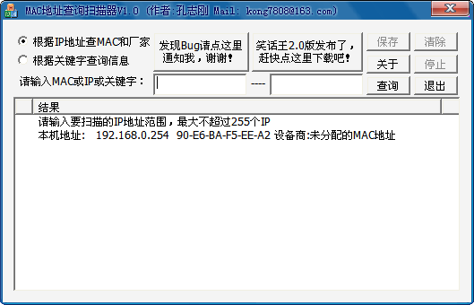 MAC地址查詢掃描器v3.2 簡(jiǎn)體中文綠色免費(fèi)版|