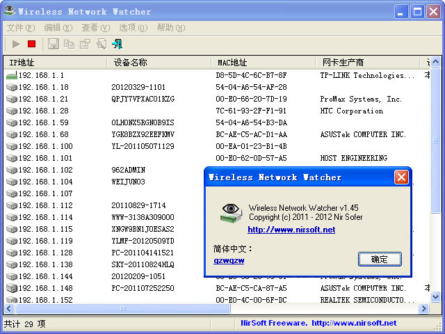 無(wú)線網(wǎng)絡(luò)用戶查看軟件(Wireless Network Watcher)V1.45 漢化綠色版|