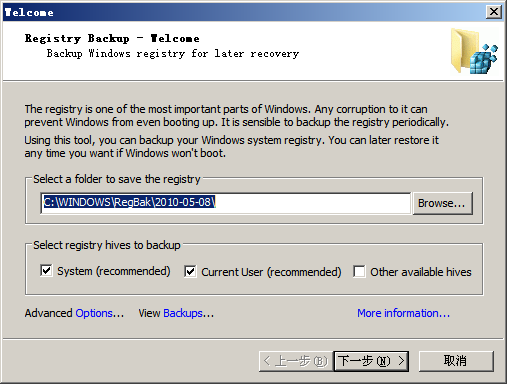 RegBak (注冊(cè)表備份恢復(fù))1.2 免費(fèi)英文綠色版|