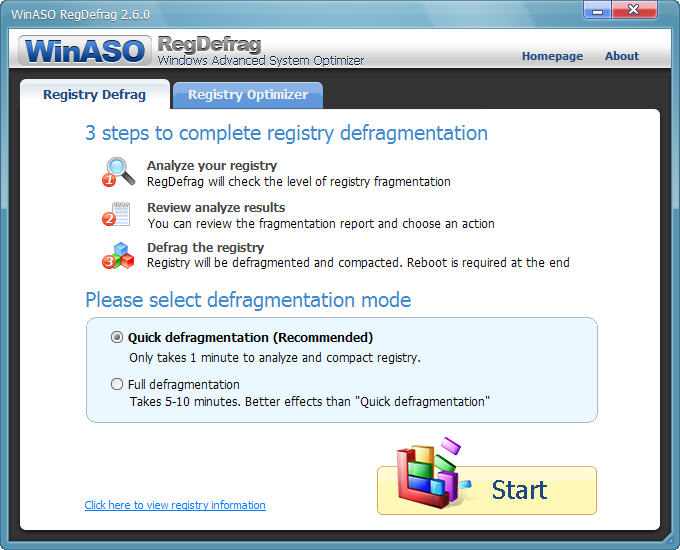 注冊表碎片整理和清理工具WinASO RegDefrag