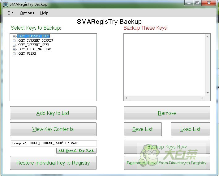注冊(cè)表鍵值備份/還原(SMARegisTry Backup)1.0綠色版|