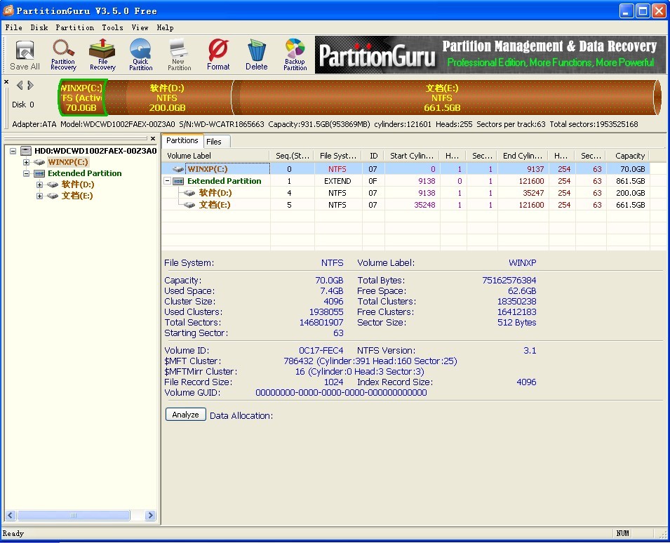 PartitionGuru(硬盤分區(qū)大師)V3.5.0綠色版|
