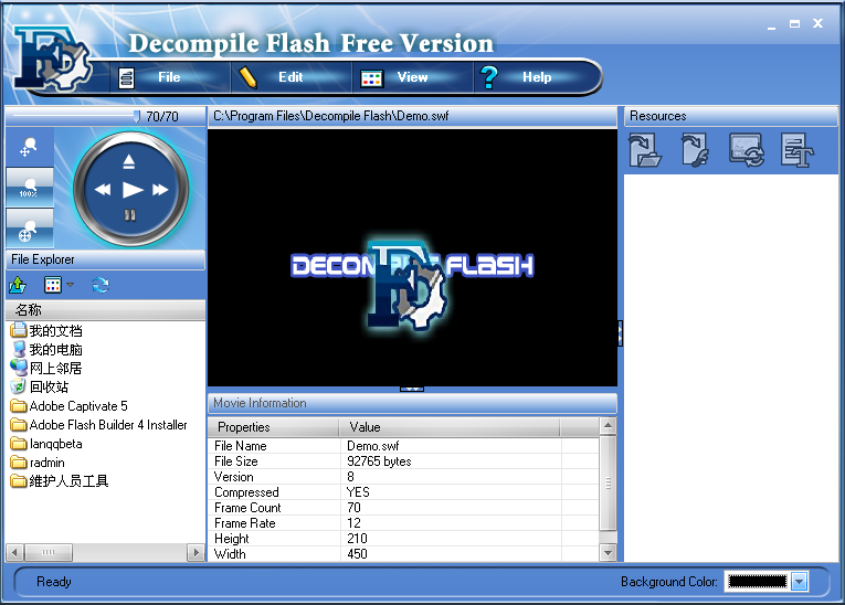 免費的SWF文件專用反編譯工具(Decompile Flash Free)V2.1.2.1777 英文安裝版|