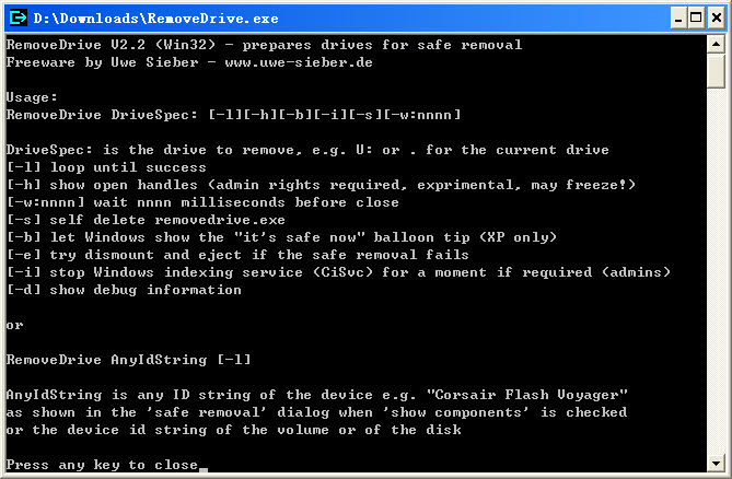 移除移動硬盤的命令行工具(RemoveDrive)2.2 英文版|