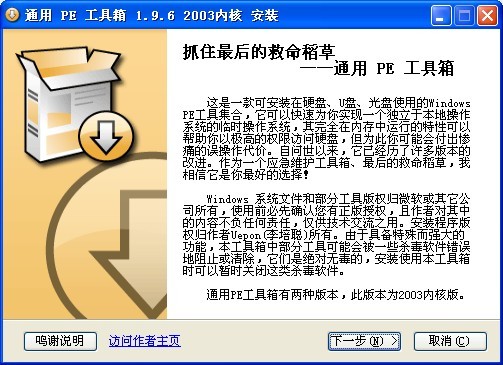 通用PE工具箱(2003內(nèi)核)V1.9.6官方安裝版|