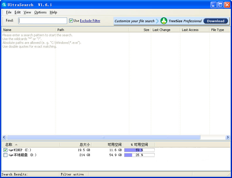 在NTFS磁盤中快速查找文件(UltraSearch)v1.61 綠色版|