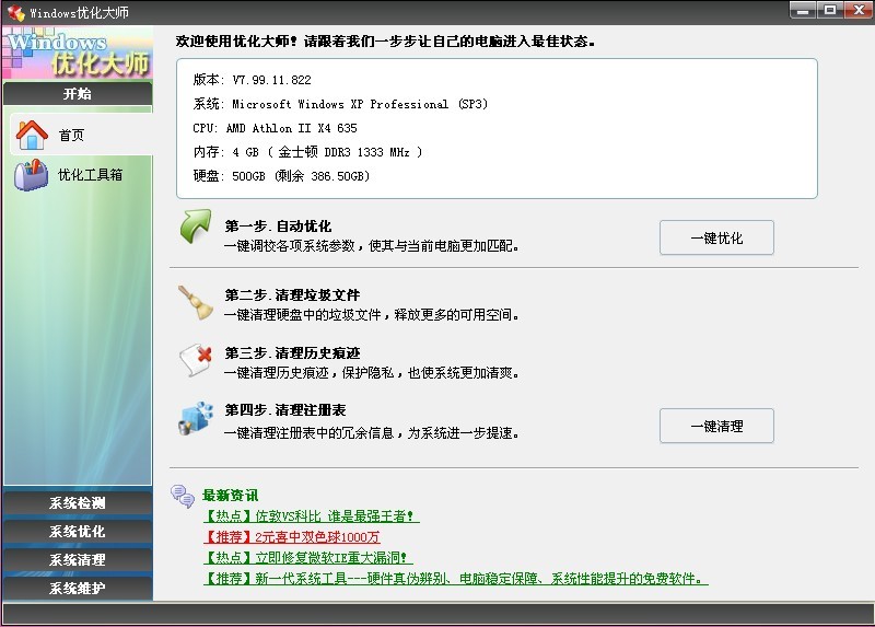 Windows優(yōu)化大師V7.99 Build 12.301 免費版|