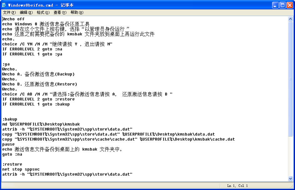 Windows 8激活信息備份還原工具1.0 綠色版|